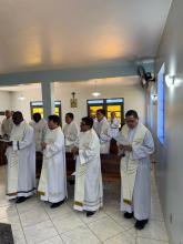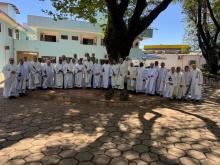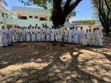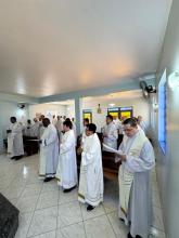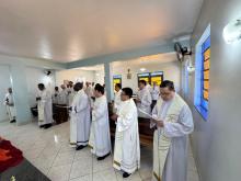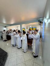 20 ottobre – Nella serata di ieri nella bella chiesa di Nostra Signora delle Grazie abbiamo solennemente fatto memoria del 60° anniversario della Parrocchia, la mattinata di oggi l’abbiamo trascorsa con i fanciulli e giovani che frequentano la Casa di Bauru. Abbiamo avuto una calorosa accoglienza del Collegio Rogazionista e dagli interventi che vi sono stati, abbiamo apprezzato l’ottimo lavoro che è compiuto nella educazione e formazione dei numerosi alunni i quali nel nostro incontro hanno manifestavano tutta la loro gioiosa partecipazione.