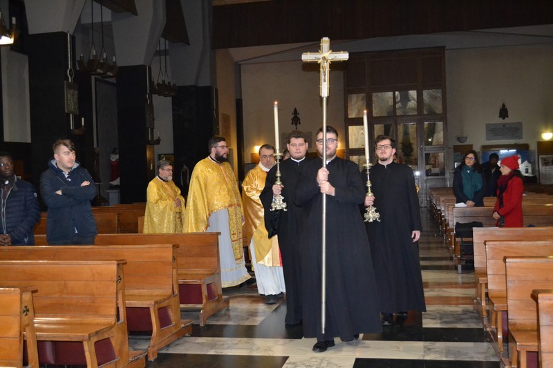 Mercoledì 21 gennaio, alle ore 19.00 santa Messa in Rito Bizantino, presieduta dal Padre Rinaldo che ha tenuto l’omelia. Con lui hanno concelebrato alcuni sacerdoti suoi confratelli, assieme al Parroco Padre Pasquale Albisinni e Padre Tony Blayl, Rogazionisti. I Canti sono stati eseguiti dai Chierici del Pontificio Collegio Pio Romeno di Roma.