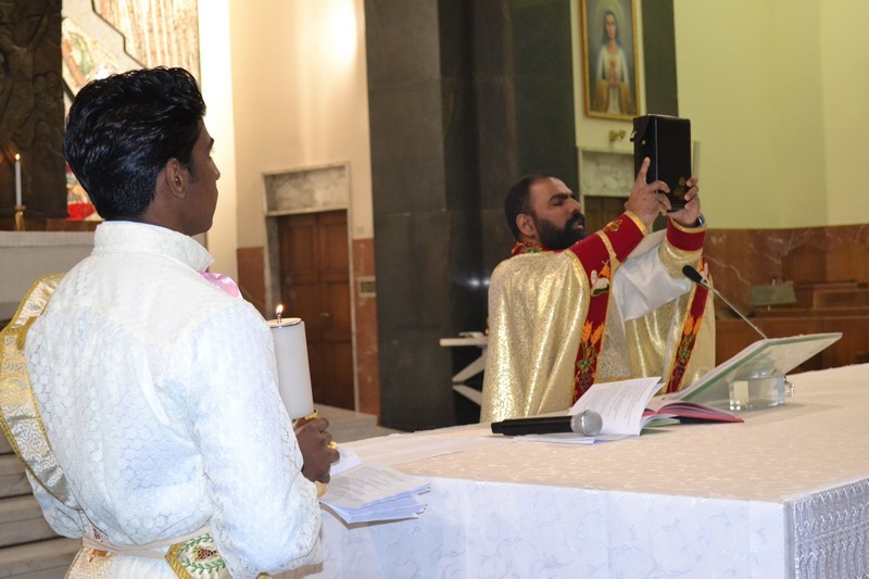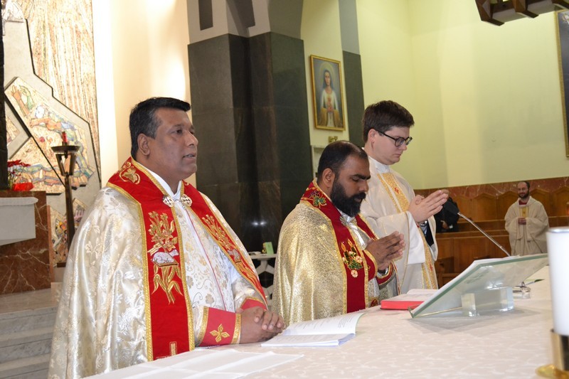 Ha presieduto Padre Tony Blayl. Con lui hanno concelebrato i Padri: Aneesh Joseph, Matteo Sanavio, Jakub Ostrozaski e Matej Hornik. Il servizio liturgico è stato prestato dai Diaconi e Accoliti del Collegio «Mater Ecclesiæ» di Roma. All’organo il Chierico Rogazionista Jijo George.