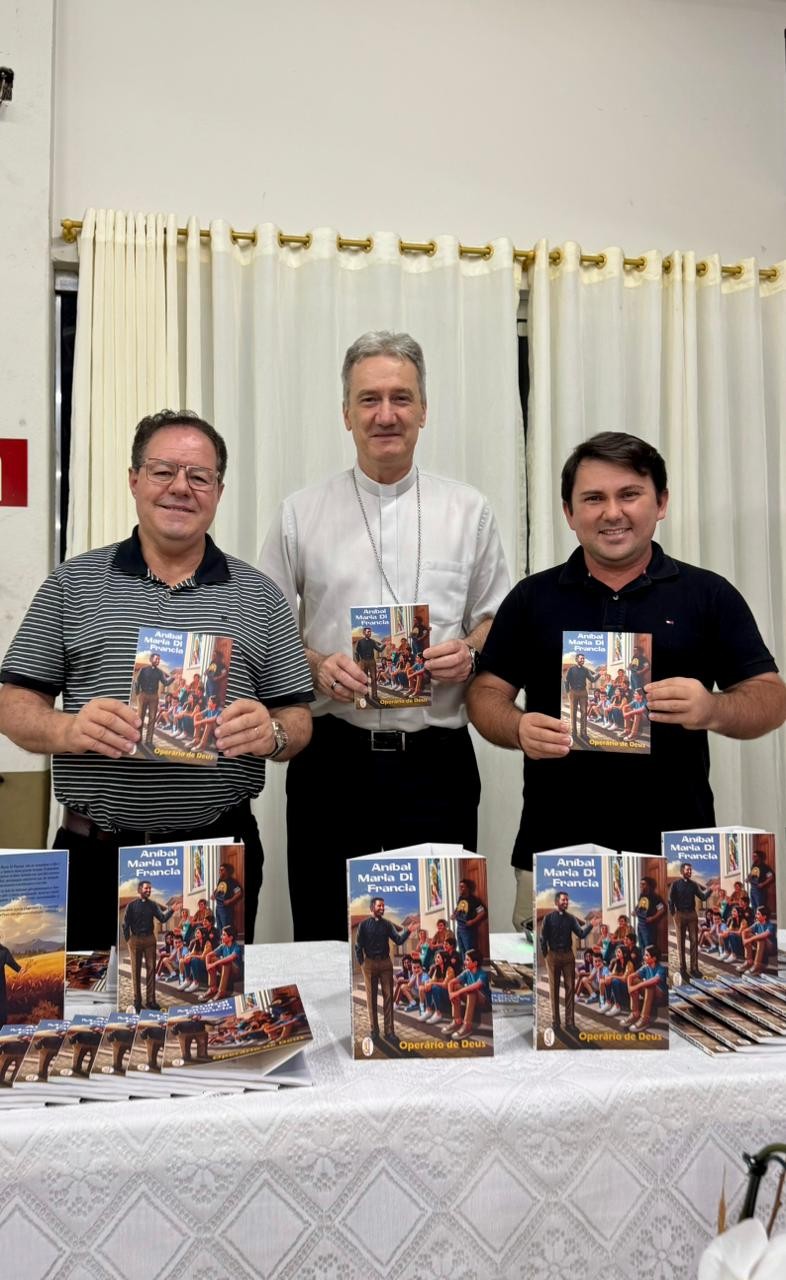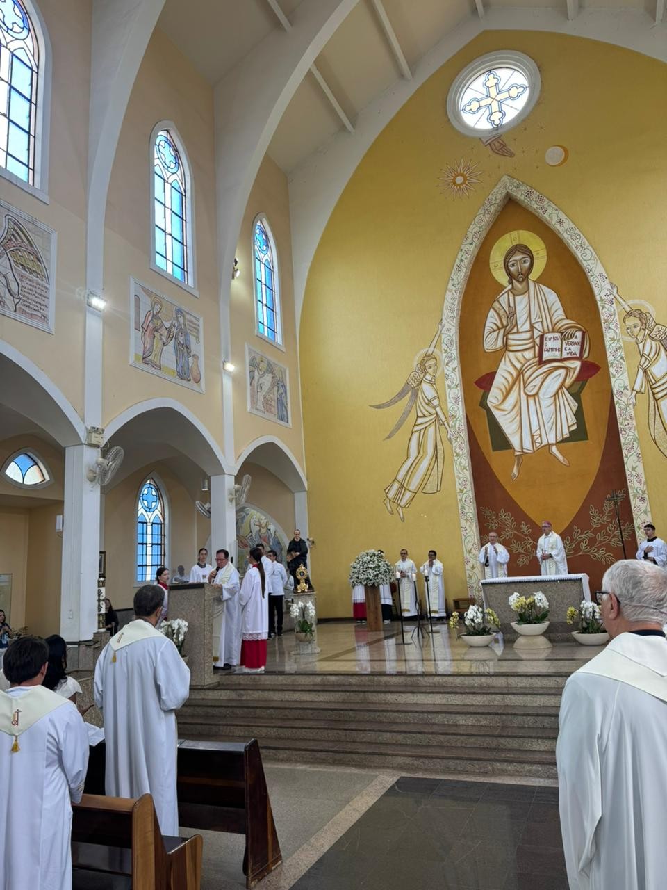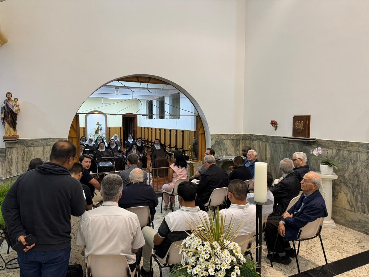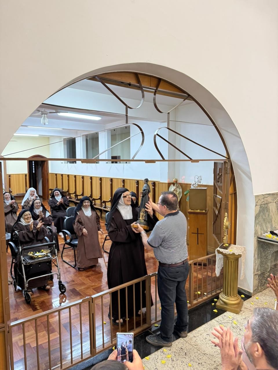 Subito dopo ci siamo recati al Santuario Nostra Signora della Penha, che domina la citta di Passos, per una celebrazione eucaristica, solenne commemorazione del 75° anniversario della venuta della Congregazione in Brasile. La Santa Messa è stata presieduta dal Vescovo Mons. Juarez. Nel pomeriggio ci siamo portati in visita alle Suore Carmelitane di Passos per un tempo di fraternità. Abbiamo offerto alle Suore una statua del santo Fondatore e celebrato i Vespri insieme. Dopo, nella Casa Madre di Passos, abbiamo avuto una serata di fraternità, con i Laici più vicini al santuario. È stato presentato un libro divulgativo e vocazionale “Annibale Maria Di Francia Operaio di Dio”; vi è stata la testimonianza di una coppia delle Famiglie Rog, di P. Antonio Chirulli e della miracolata Gleida Danese. La serata è stata accompagnata dalla musica dal chitarrista Julio Bastos e da P. Guido Mottinelli, al pianoforte con brani di autori classici. In chiusura è stata distribuita a tutti una piccola luce elettrica a forma di fiamma che ha accompagnato un canto di P. Silvas Oliveira simboleggiando lo zelo del Rogate.