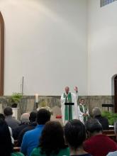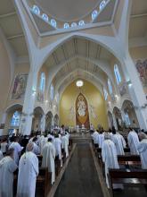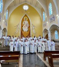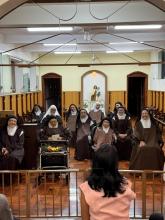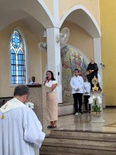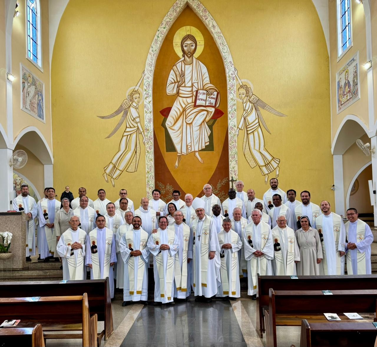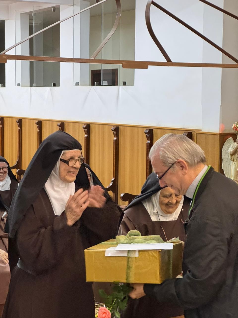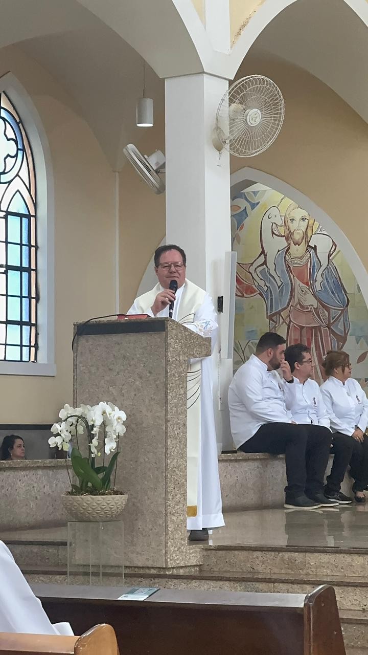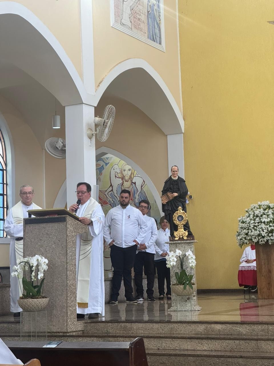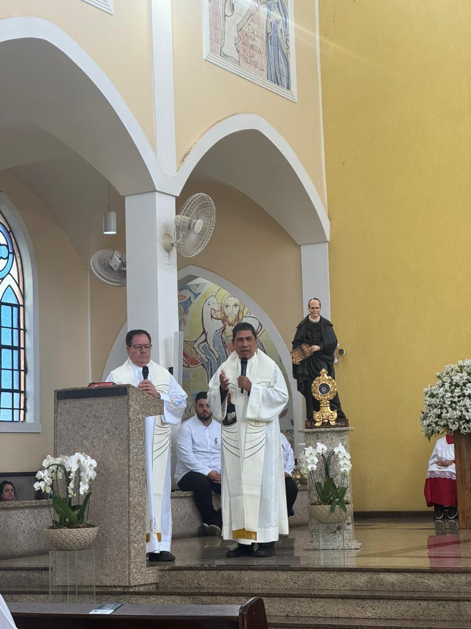 Subito dopo ci siamo recati al Santuario Nostra Signora della Penha, che domina la citta di Passos, per una celebrazione eucaristica, solenne commemorazione del 75° anniversario della venuta della Congregazione in Brasile. La Santa Messa è stata presieduta dal Vescovo Mons. Juarez. Nel pomeriggio ci siamo portati in visita alle Suore Carmelitane di Passos per un tempo di fraternità. Abbiamo offerto alle Suore una statua del santo Fondatore e celebrato i Vespri insieme. Dopo, nella Casa Madre di Passos, abbiamo avuto una serata di fraternità, con i Laici più vicini al santuario. È stato presentato un libro divulgativo e vocazionale “Annibale Maria Di Francia Operaio di Dio”; vi è stata la testimonianza di una coppia delle Famiglie Rog, di P. Antonio Chirulli e della miracolata Gleida Danese. La serata è stata accompagnata dalla musica dal chitarrista Julio Bastos e da P. Guido Mottinelli, al pianoforte con brani di autori classici. In chiusura è stata distribuita a tutti una piccola luce elettrica a forma di fiamma che ha accompagnato un canto di P. Silvas Oliveira simboleggiando lo zelo del Rogate.