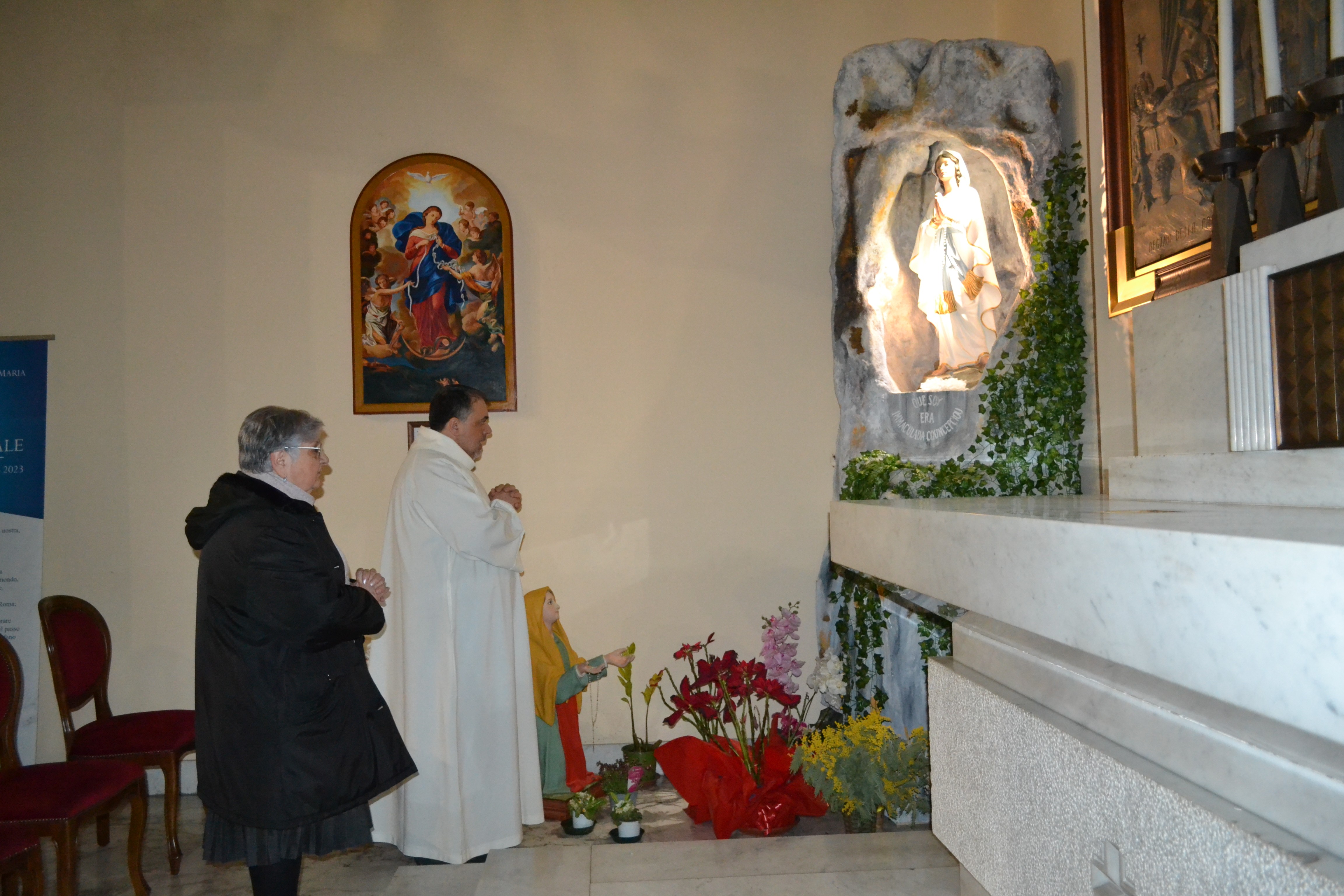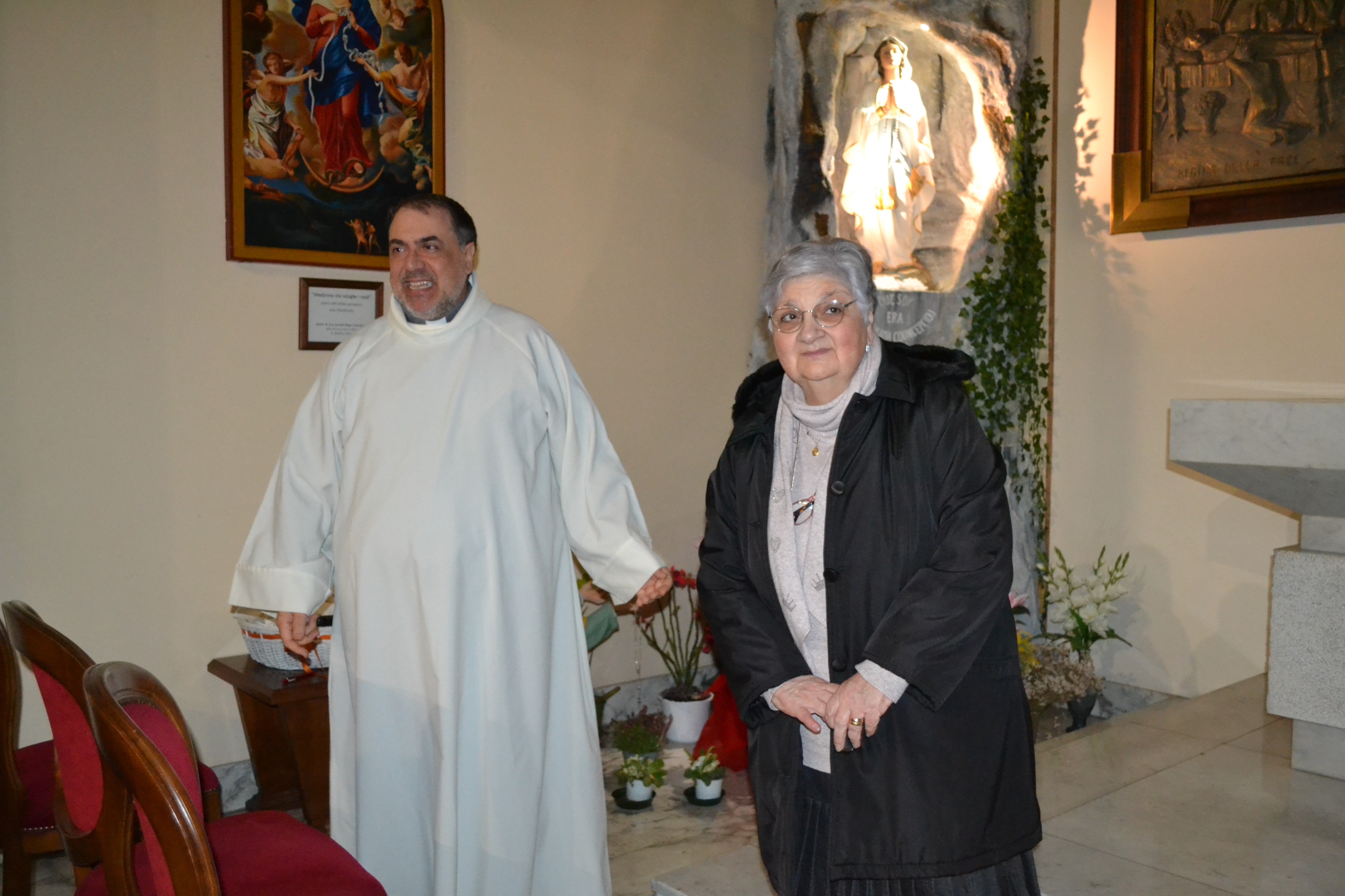 Il Parroco, Padre Pasquale Albisinni, ha ringraziato Antonietta, e il folto pubblico intervenuto, e ha fatto concludere l’incontro con un breve momento di preghiera presso la Cappella della Madonna di Lourdes.