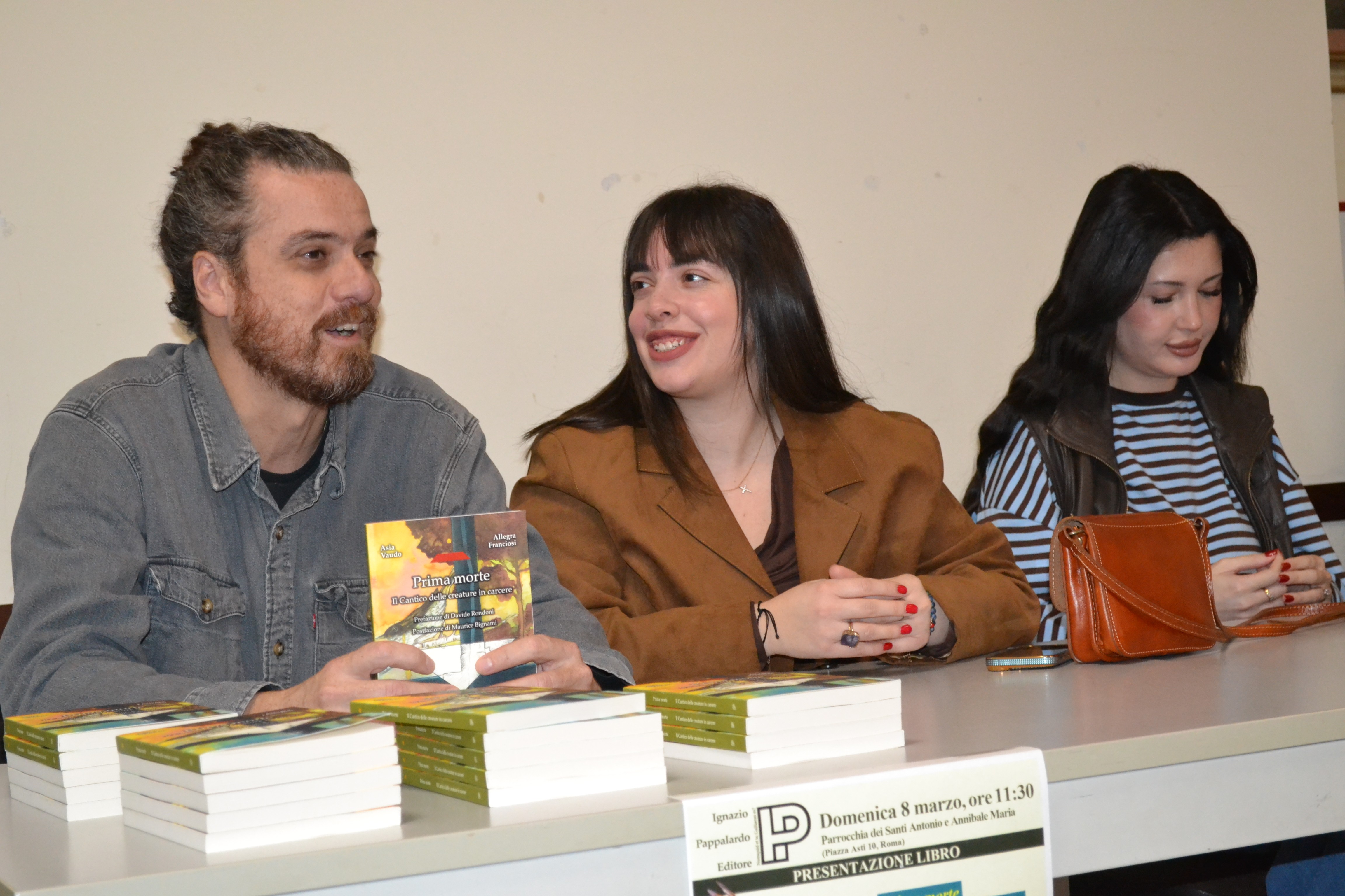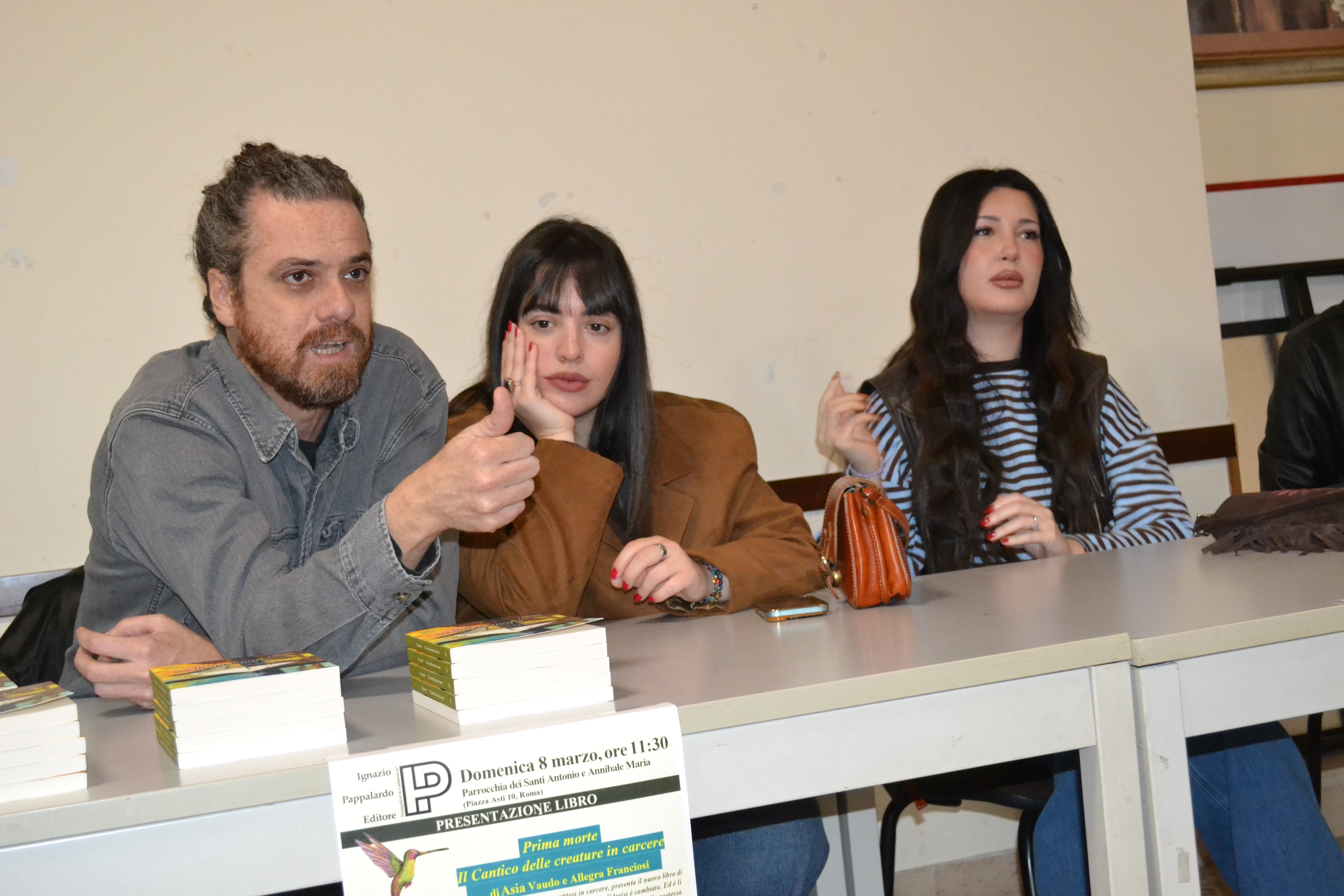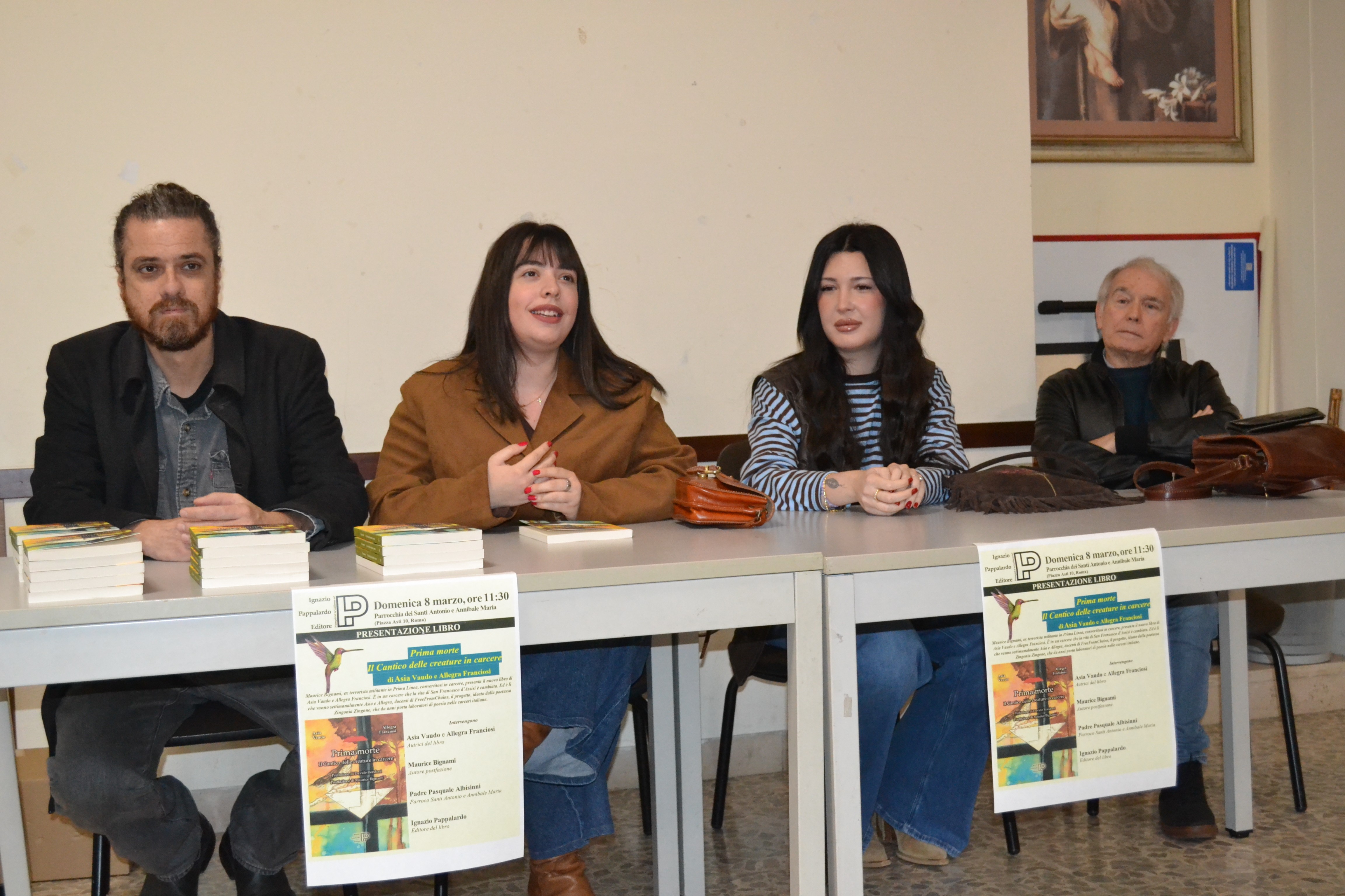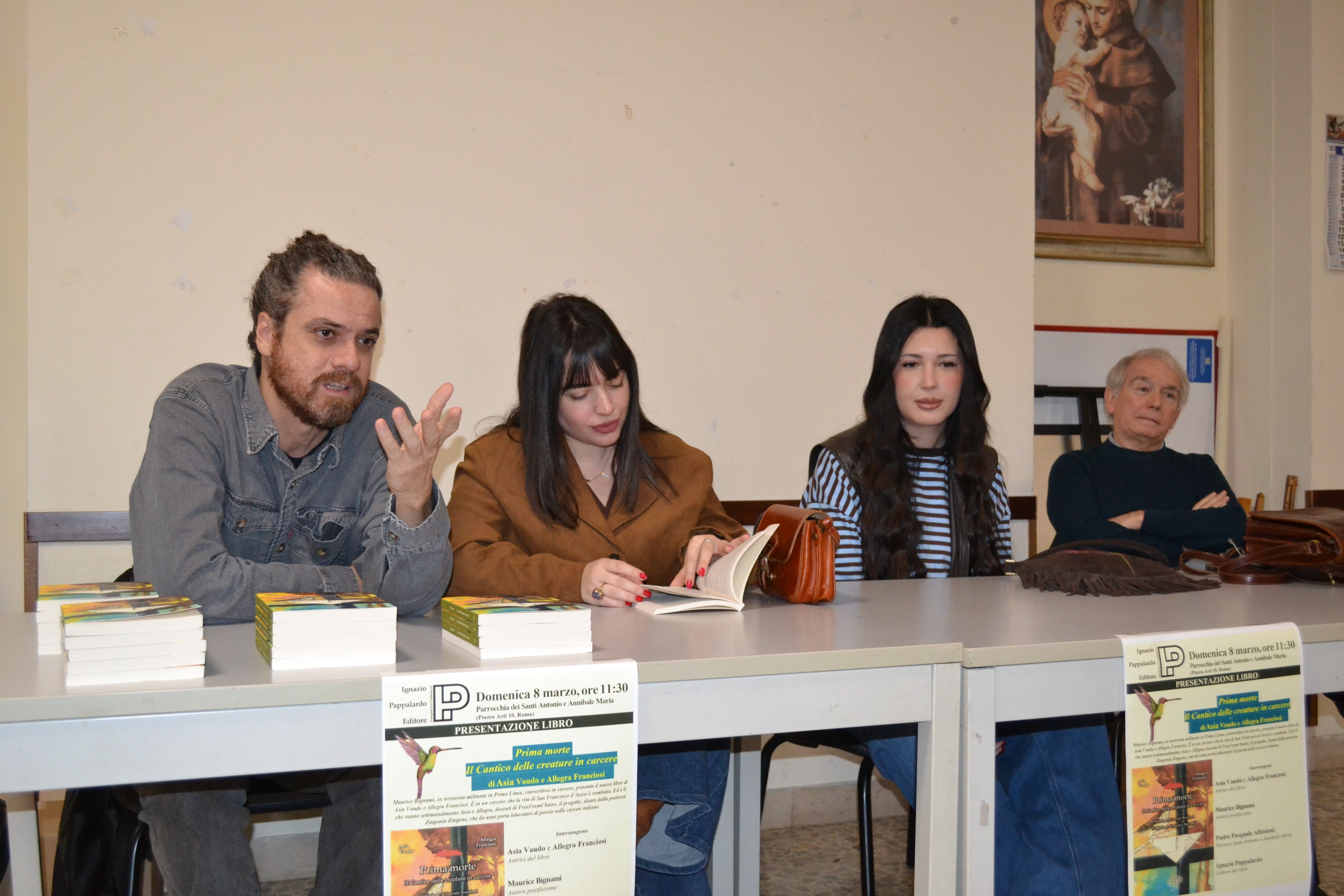Alle ore 11,30 di Domenica 8 marzo 2026, nella «Sala Sant’Annibale» presso la parrocchia romana dei Santi Antonio e Annibale Maria, ha avuto luogo la presentazione del libro: Prima morte. Il Cantico delle Creature in Carcere, con prefazione di Davide Rondoni.