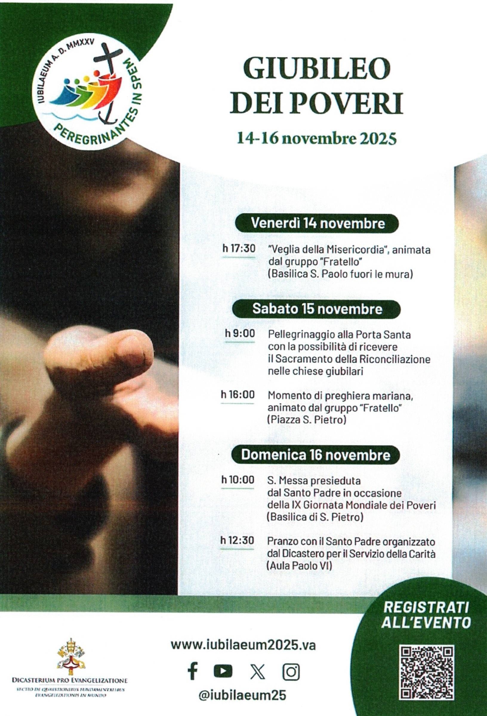 8.11.2025 – Dal 14 al 16 novembre si svolgerà il Giubileo dei Poveri. Per l’occasione il Padre Generale ha inviato una lettera circolare alla Congregazione e per conoscenza alla Famiglia del Rogate, Figlie del Divino Zelo, Missionarie Rogazioniste e Laici e Laiche della Famiglia Carismatica, lettera che alleghiamo.