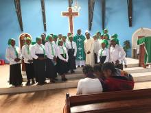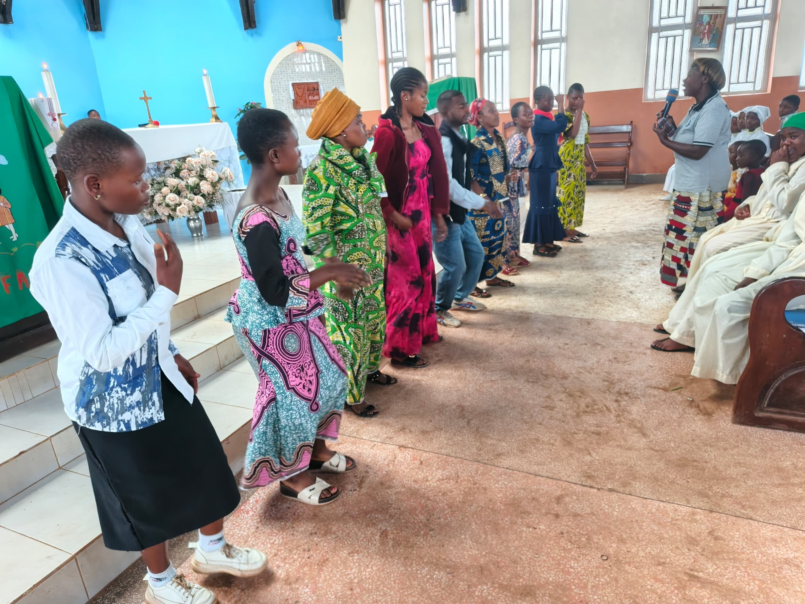 Une intention particulière de prière a été élevée pour les personnes sourdes, pour quelles soient toujours respectées dans leur dignité et soutenues dans leur parcours de foi. De nombreux fidèles, jeunes et adultes ont reçu la communion avec recueillement. La liturgie sest enrichie des chants daction de grâce en langue des signes des sourds et interprétés par madame Marie- Louise. Leurs gestes gracieux et pleine de foi ont touché profondément les participants surtout les jeunes nombreux à assister à cette troisième messe dominicale.
