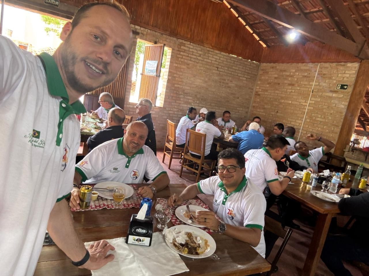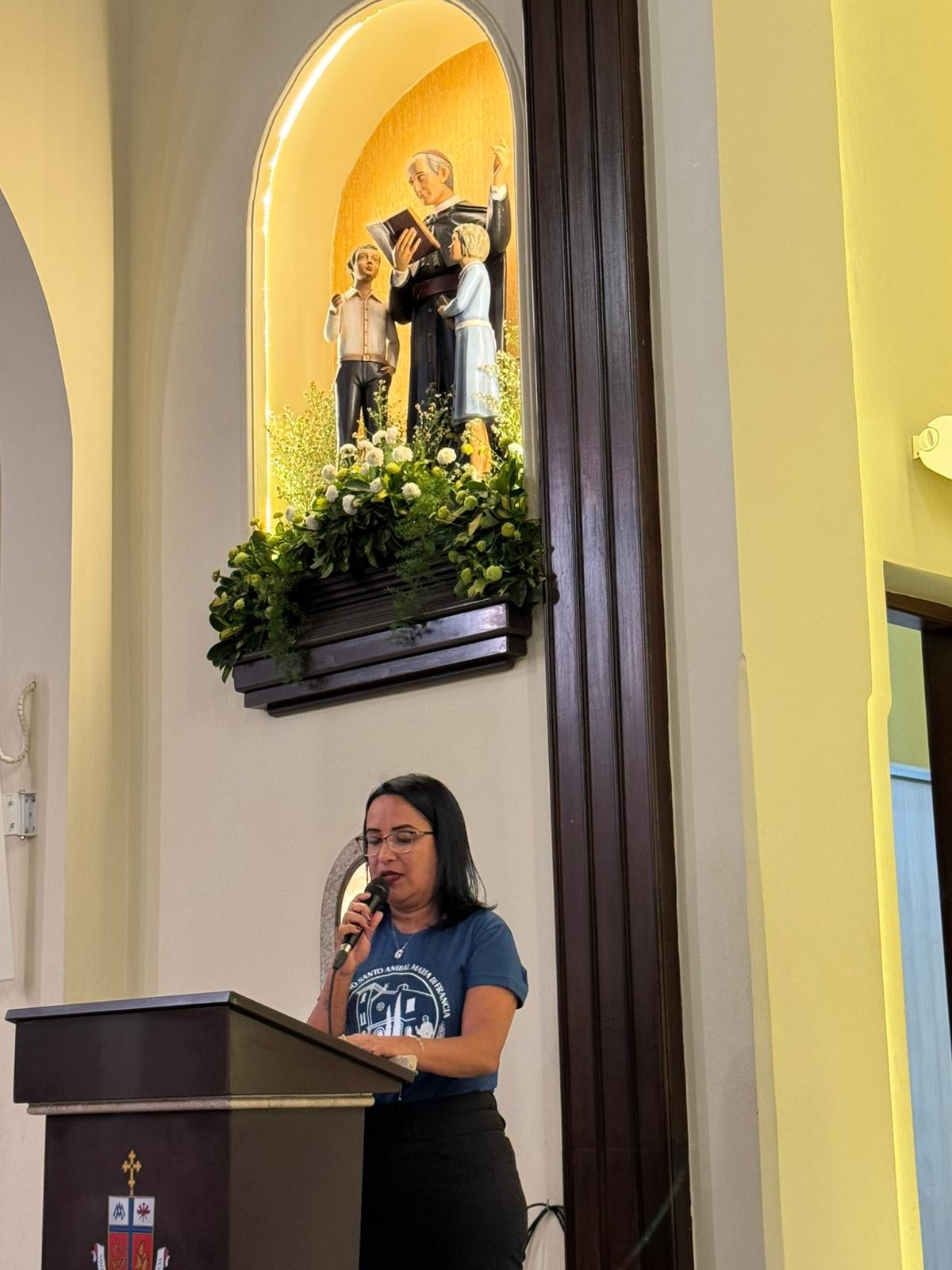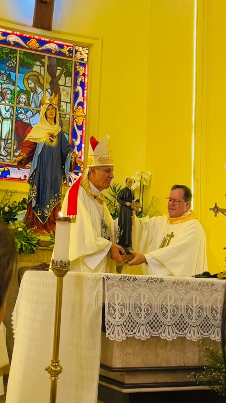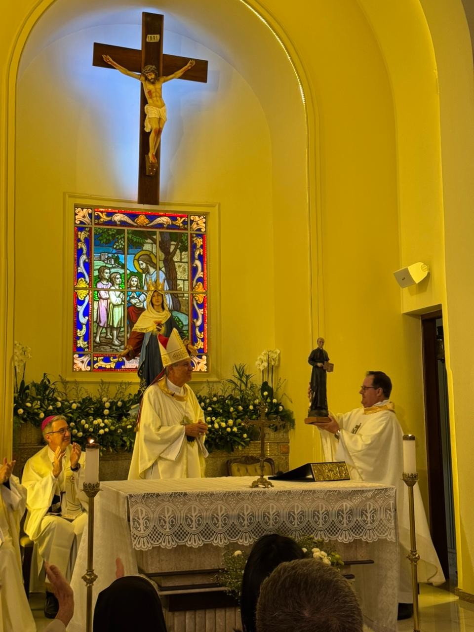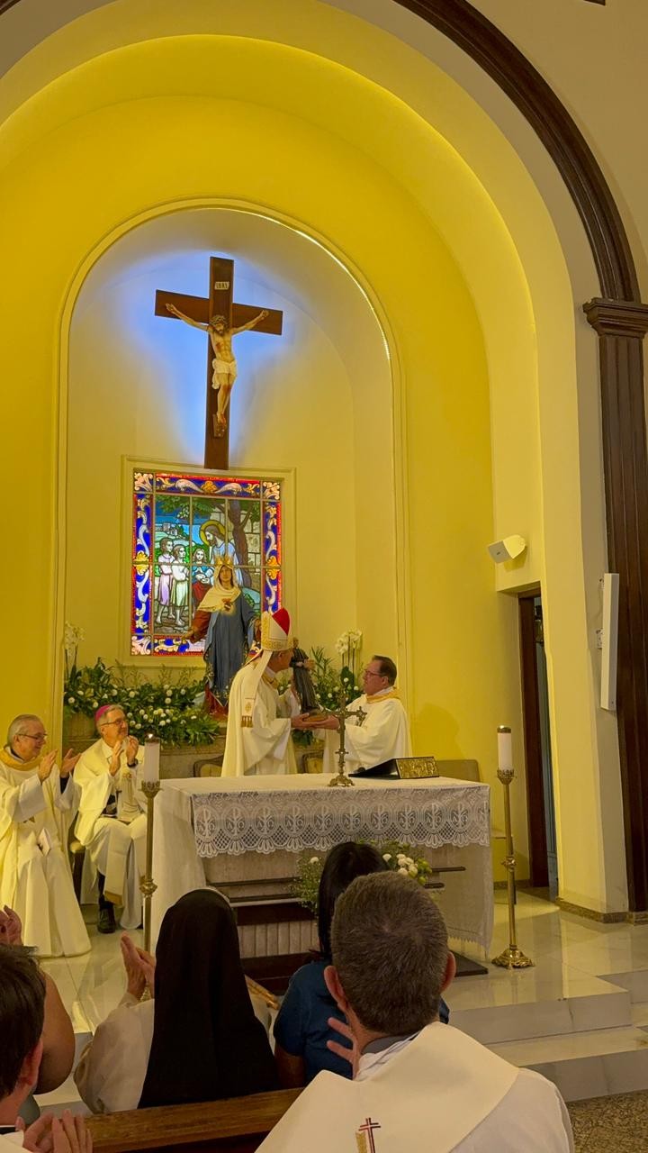 17 ottobre 2025 – La giornata si è aperta con la liturgia delle Lodi e, dopo colazione, si è partiti in pullman da San Paolo verso Passos (MG). Alle ore 12,00 abbiamo avuto la pausa pranzo e intorno alle ore 16,00 siamo giunti alla meta, e abbiamo preso alloggio in un Hotel alle porte della città. Un’ora dopo ci siamo portati alla Casa Madre della Provincia e vi è stata l’accoglienza e la visita al Santuario Sant’Annibale e alla Casa. Alle 18,30 ha avuto inizio, nel santuario gremito di fedeli, la concelebrazione eucaristica per i 75 anni della presenza dei Rogazionisti nel continente latino-americano, presieduta dal Vescovo di Guaxupé, Mons. José Lanza Neto, concelebranti Mons. Juarez Albino Destro, Vescovo Ausiliare di Porto Alegre, il Superiore Generale, P. Bruno Rampazzo, il Superiore Provinciale, P. Geraldo Tadeu Furtado. Era presente una rappresentanza delle Figlie del Divino Zelo e la Signora Gleida Danese, per la quale si è ottenuta la miracolosa guarigione per intercessione di Padre Annibale che ha consentito la beatificazione. Al termine della santa Messa vi è stato il saluto del Padre Generale e il ringraziamento del rettore del santuario, P. Silas Oliveira, quindi, vi è stata la benedizione di una cappellina, adiacente al santuario, dedicata a Sant’Annibale con una copia della sua urna. È seguita la cena con la partecipazione di un folto numero dei membri dei diciannove gruppi che frequentano il santuario, durante la quale abbiamo festeggiato anche il compleanno di P. James Plathottathil.