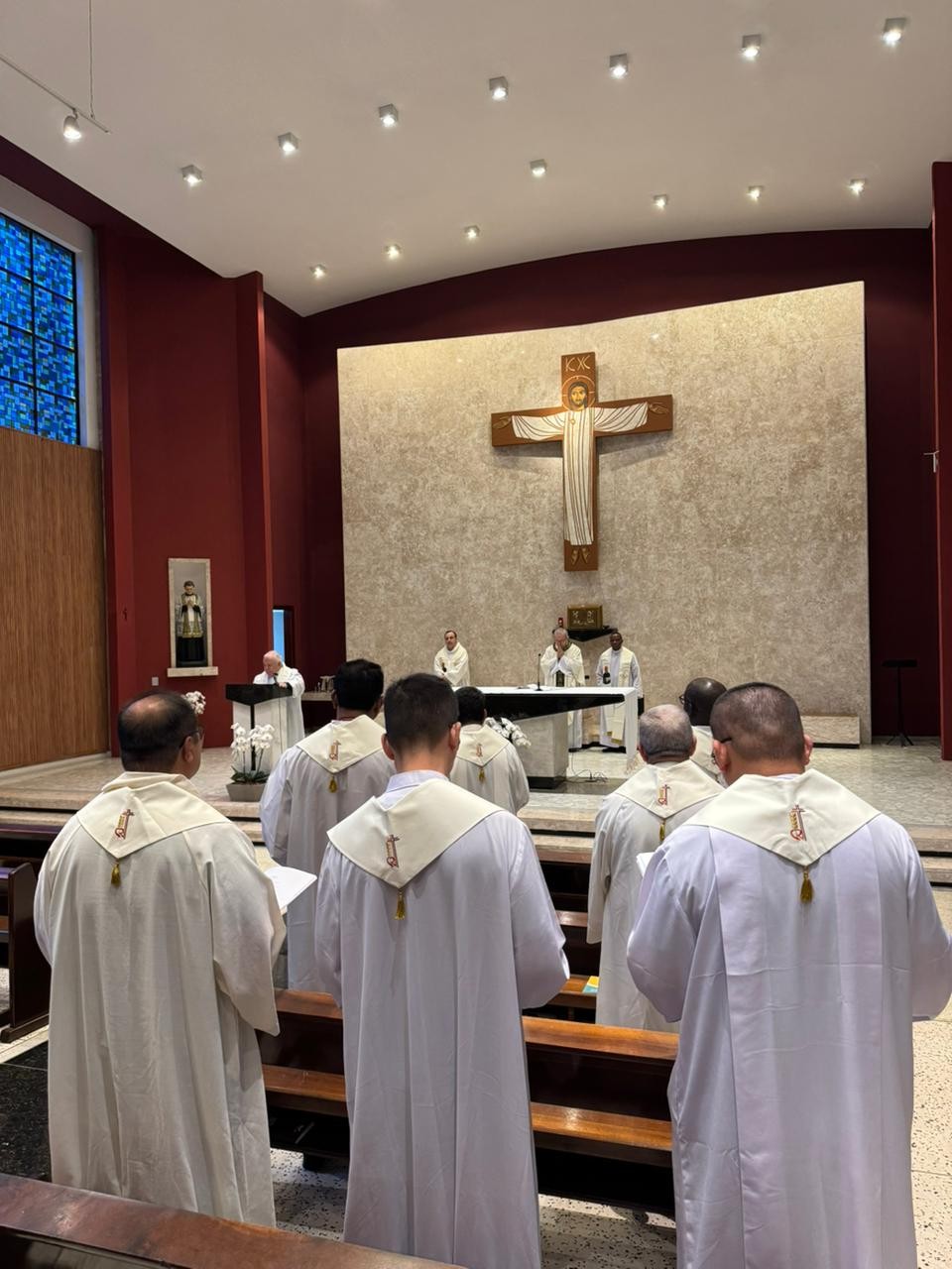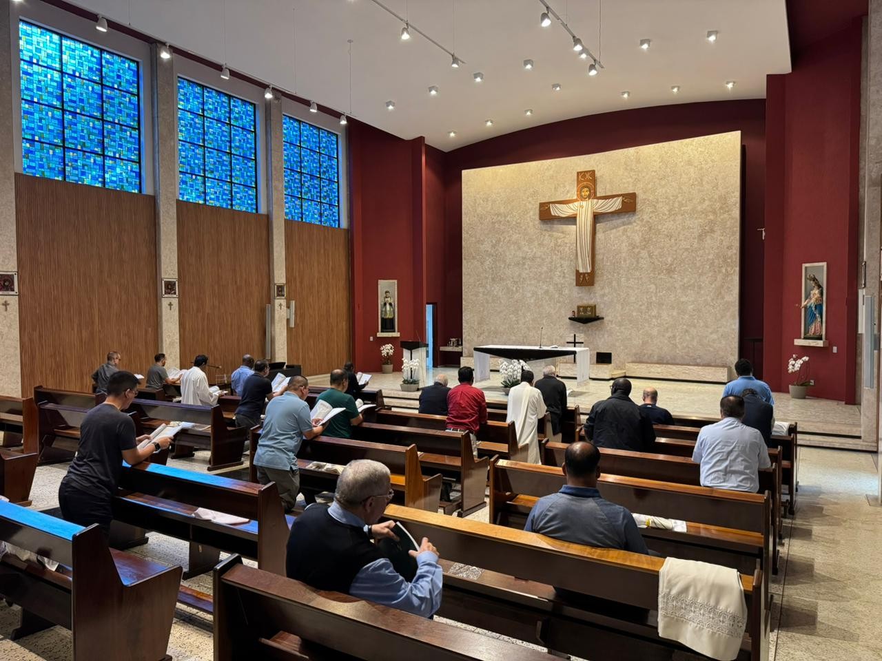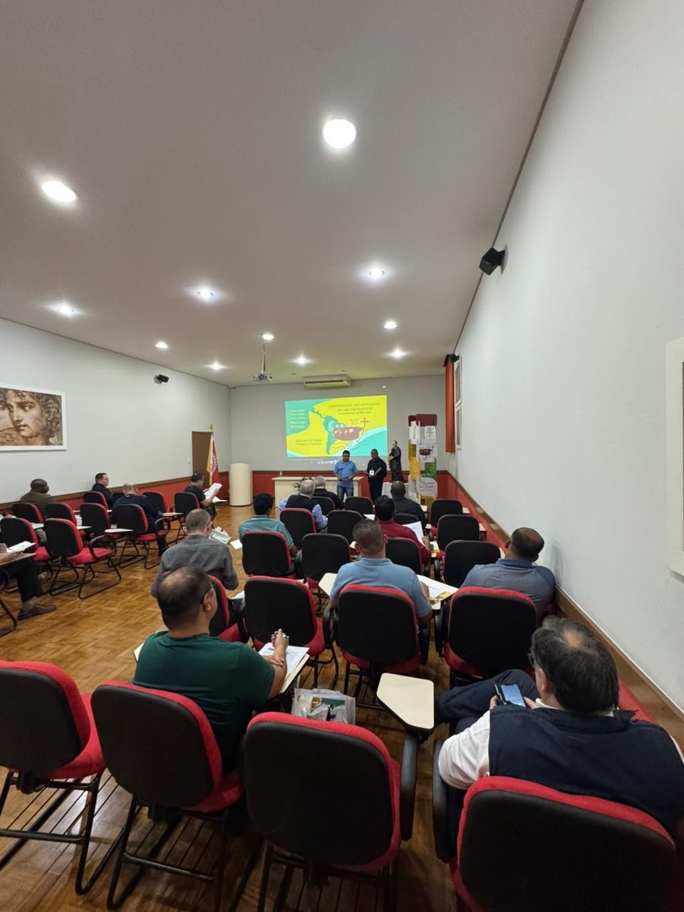 12 ottobre 2025 – Dopo l’arrivo dei partecipanti al Centro dei Salesiani in San Paolo, rione Lapa, alle 17,30 vi è stata la celebrazione dei Vespri e la Santa Messa di apertura della Conferenza dei Superiori di Circoscrizione 2025, presieduta dal Superiore Generale, P. Bruno Rampazzo. Egli nell’omelia, che alleghiamo, fra l’altro, ci ha esortati: “Mantenere la speranza: quante difficoltà ci sono nella vita di ognuno di noi, nella nostra gente, nelle nostre comunità, ma per quanto grandi possano apparire Dio non lascia mai che ne siamo sommersi …Dio cammina accanto a noi, in nessun momento ci abbandona. Siamo chiamati ad essere luci di speranza, con uno sguardo positivo sulla realtà”. Ed ancora: “Vivere nella gioia: Se camminiamo nella speranza, lasciandoci sorprendere dal vino nuovo che Gesù ci offre, nel nostro cuore c’è gioia e non possiamo che essere testimoni di questa gioia. Il cristiano è gioioso, non è mai triste”. Dopo cena, nell’aula dell’assemblea, vi è stato un incontro per concordare i vari aspetto organizzativi della Conferenza.