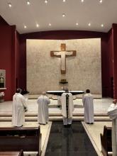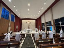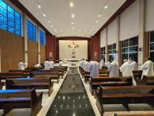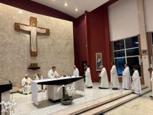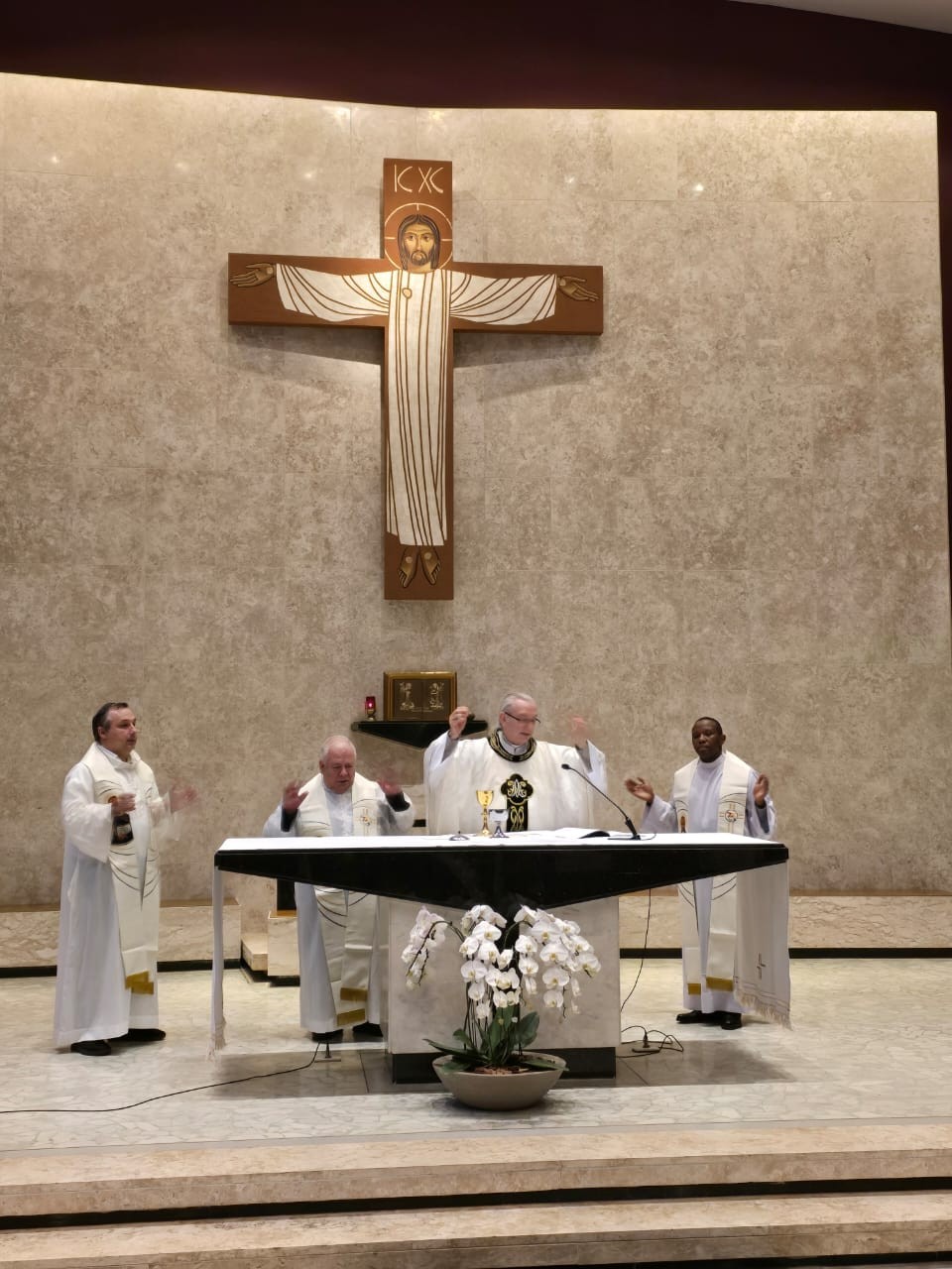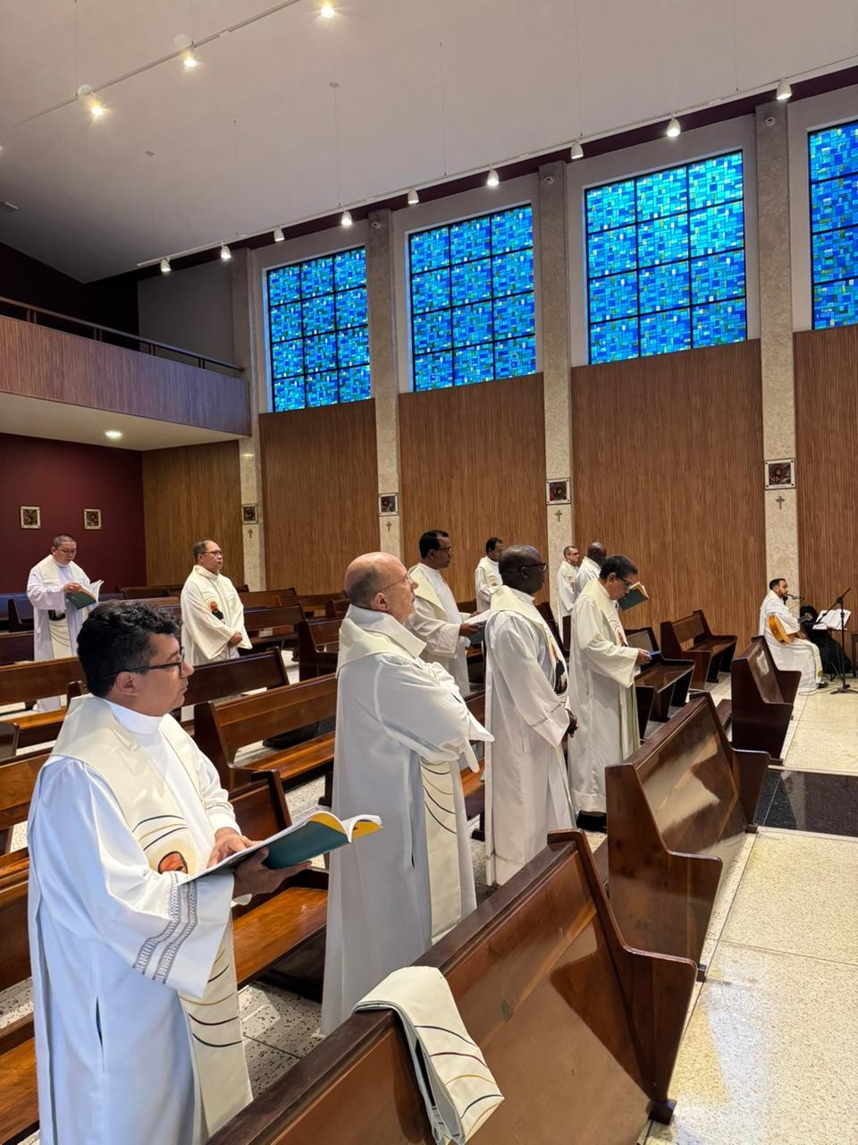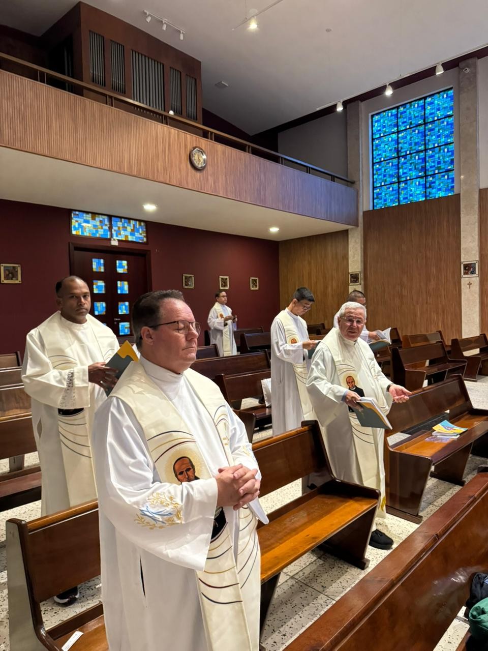 12 ottobre 2025 – Dopo l’arrivo dei partecipanti al Centro dei Salesiani in San Paolo, rione Lapa, alle 17,30 vi è stata la celebrazione dei Vespri e la Santa Messa di apertura della Conferenza dei Superiori di Circoscrizione 2025, presieduta dal Superiore Generale, P. Bruno Rampazzo. Egli nell’omelia, che alleghiamo, fra l’altro, ci ha esortati: “Mantenere la speranza: quante difficoltà ci sono nella vita di ognuno di noi, nella nostra gente, nelle nostre comunità, ma per quanto grandi possano apparire Dio non lascia mai che ne siamo sommersi …Dio cammina accanto a noi, in nessun momento ci abbandona. Siamo chiamati ad essere luci di speranza, con uno sguardo positivo sulla realtà”. Ed ancora: “Vivere nella gioia: Se camminiamo nella speranza, lasciandoci sorprendere dal vino nuovo che Gesù ci offre, nel nostro cuore c’è gioia e non possiamo che essere testimoni di questa gioia. Il cristiano è gioioso, non è mai triste”. Dopo cena, nell’aula dell’assemblea, vi è stato un incontro per concordare i vari aspetto organizzativi della Conferenza.