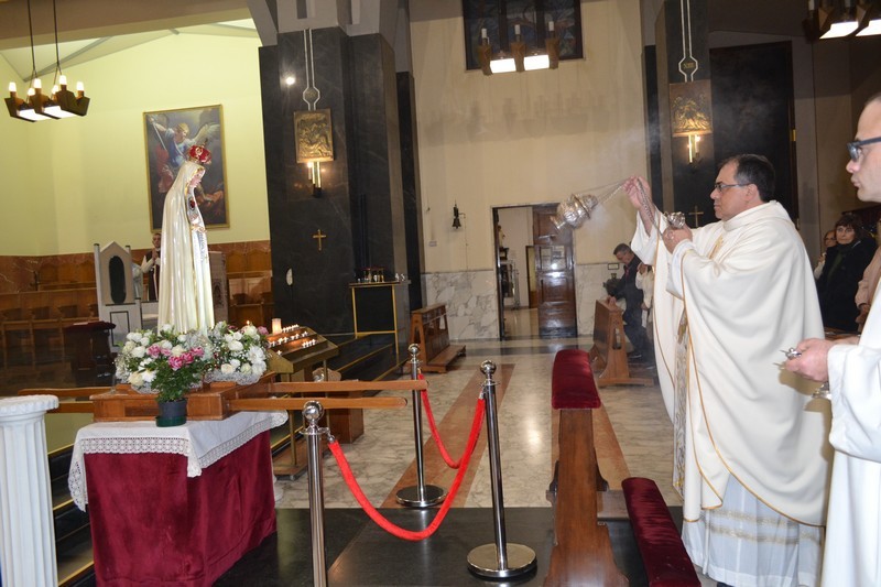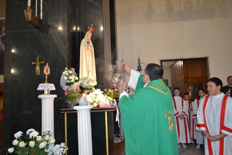 Il 13 ottobre, giorno della festa, alle ore 19 ha avuto luogo la celebrazione della Santa Messa presieduta dal Parroco Padre Pasquale Albisinni. Dopo la Messa si è fatta la processione aux flambeaux dalla chiesa al cortile della parrocchia.
