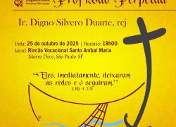 3.10.2025 - Com alegria, convidamos para participar da Profissão Perpétua do nosso Irmão Digno Silvero Duarte, rcj, que encerra sua etapa formativa e...