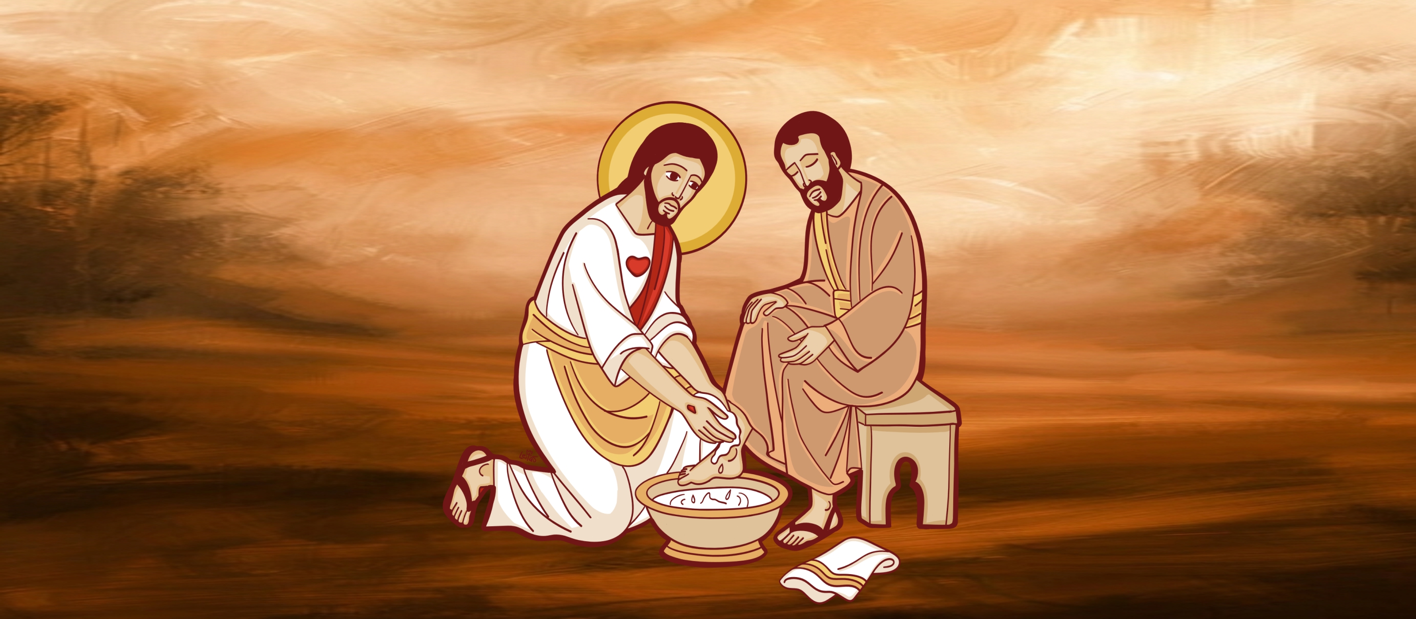 Durante la cena, quando il diavolo aveva già messo in cuore a Giuda, figlio di Simone Iscariota, di tradirlo, Gesù, sapendo che il Padre gli aveva dato tutto nelle mani e che era venuto da Dio e a Dio ritornava, si alzò da tavola, depose le vesti, prese un asciugamano e se lo cinse attorno alla vita. Poi versò dell'acqua nel catino e cominciò a lavare i piedi dei discepoli e ad asciugarli con l'asciugamano di cui si era cinto.