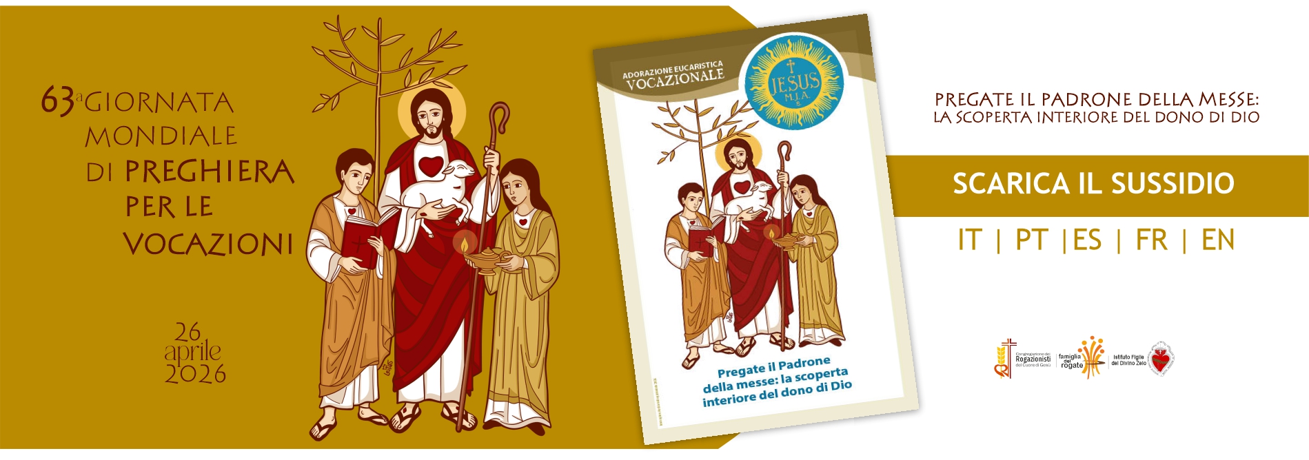 La celebrazione della 63ª Giornata Mondiale di Preghiera per le Vocazioni si terrà il 26 aprile 2026. Alleghiamo un sussidio per la celebrazione di questo grande giorno per tutta la Famiglia del Rogate. L’adorazione vocazionale proposta si basa sul messaggio di Papa Leone XIV.