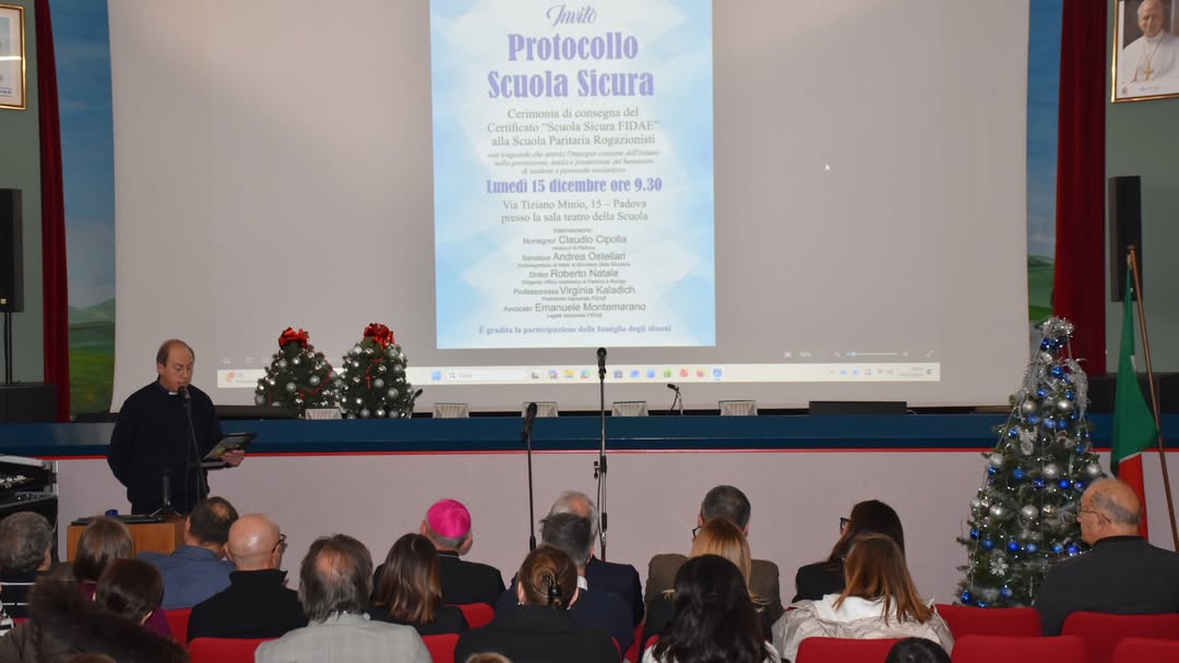 "È con grande gioia e con un profondo senso di responsabilità che oggi siamo qui a Padova per celebrare un traguardo di particolare rilievo: la consegna dell’Attestato “Scuola Sicura Fidae” alla scuola Secondaria di primo e secondo grado della Congregazione dei Padri Rogazionisti, prima scuola del Veneto a ricevere questo importante riconoscimento."
