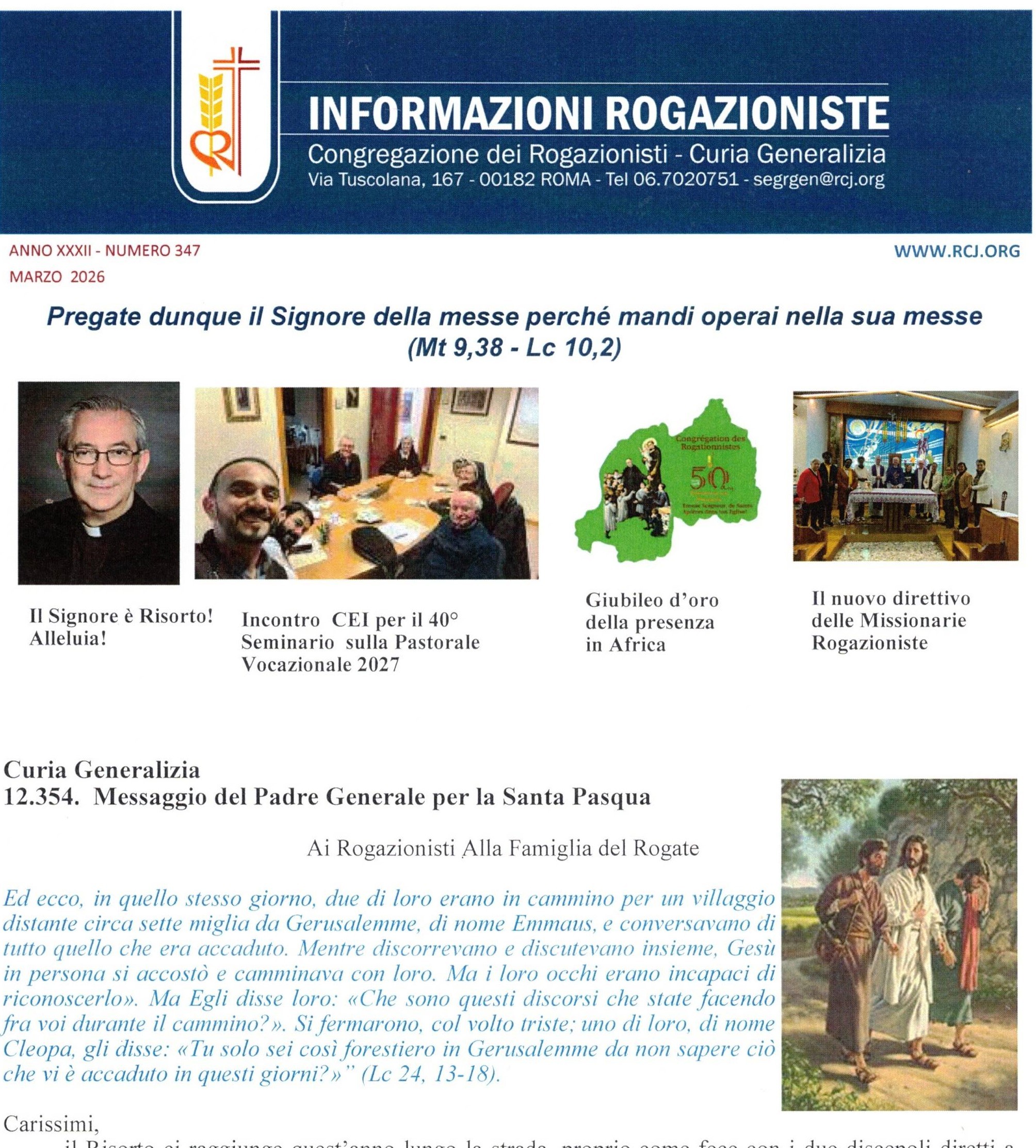 25.03.2026 - Pubblichiamo le Informazioni Rogazioniste di marzo, con i migliori auguri della Santa Pasqua, il messaggio del Padre Generale, e ringraziando per le notizie che riceviamo per condividerle nelle prossime Informazioni Rogazioniste.
