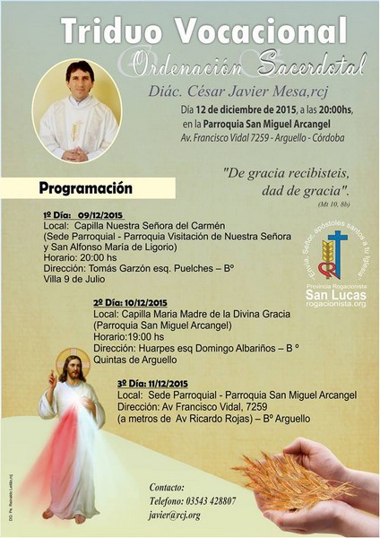 La VI Assemblea dei Religiosi della Provincia Rogazionista San Luca si terrà dal 19 al 22 settembre 2016, nel centro di spiritualità "Flos Carmeli" a Mairipora (San Paolo). P. Bruno Rampazzo, Superiore Generale, presiederà l'evento. L'assemblea avrà come tema: "Cultura Vocazionale: speranze e sfide nella messe del Signore". All'evento parteciperanno quasi tutti i religiosi della provincia, per un totale di 67, includendo anche i novizi. I religiosi di Campana, Argentina, giustificano la loro assenza a causa della malattia di P.