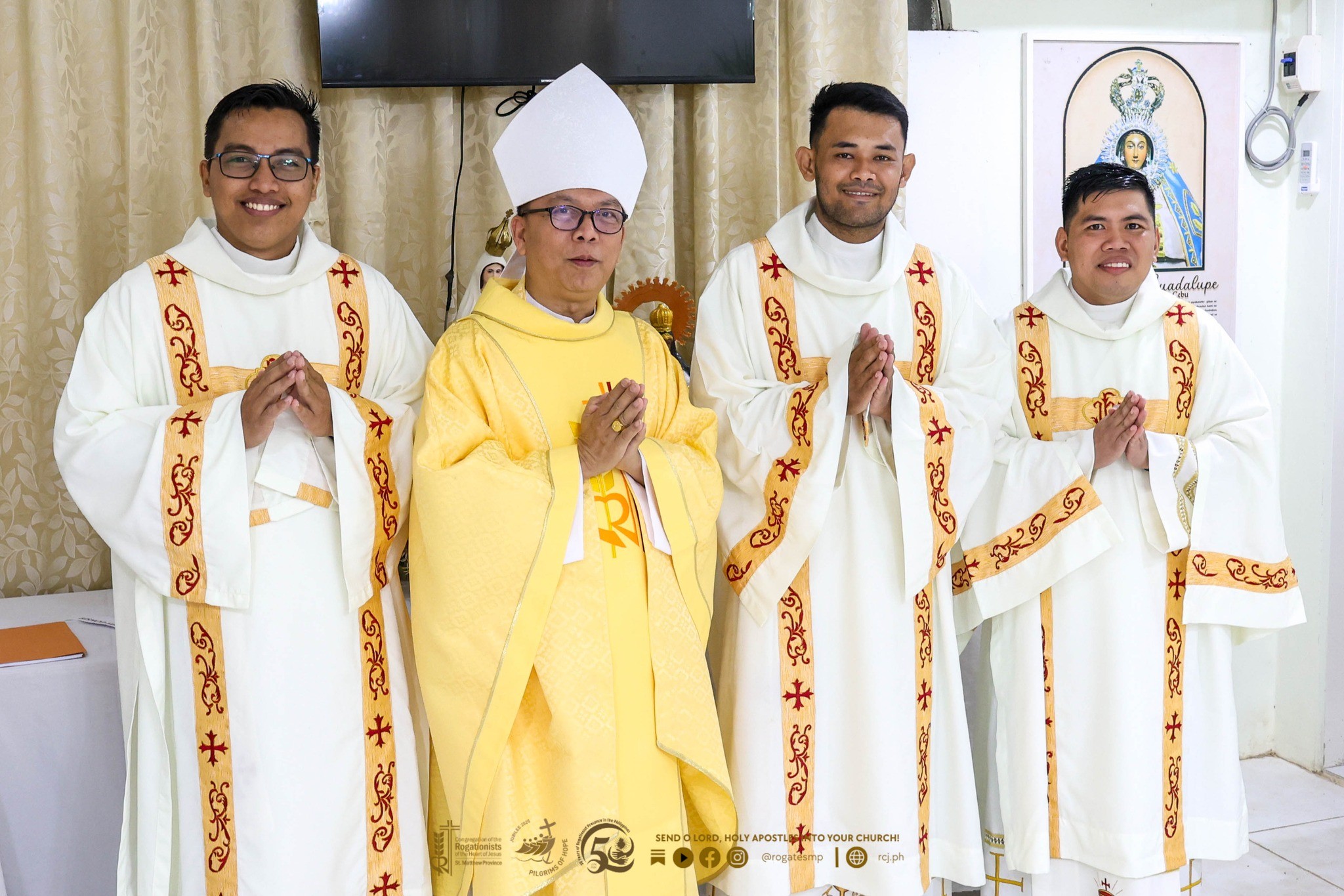 Madridejos, Bantayan Island, Cebu — The Rogationists of the Heart of Jesus, St. Matthew Province, marked a historic and grace-filled moment on November 15, 2025, as three deacons were ordained to the Sacred Order of Presbyters at the Immaculate Conception Parish in Madridejos. Rev. Benny Giltendez Caraos, RCJ, Rev. Aldine Narisma Colago, RCJ, and Rev. Roderick Oflas Fernandez, RCJ received the gift of priesthood through the laying on of hands of Most Rev. Herman Abcede, RCJ, D.D., who presided as the ordaining prelate.