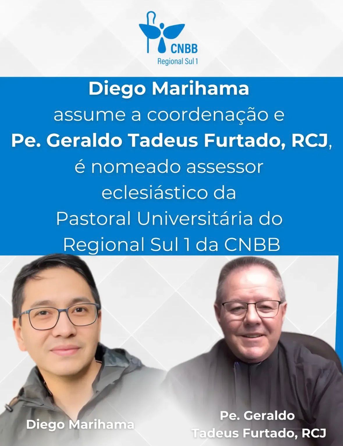 (December 15) Monsignor Moacir Silva, Archbishop of Ribeirão Preto and President of Region South 1 of the National Conference of Brazilian Bishops (CNBB), has appointed Fr. Geraldo Tadeus Furtado, RCJ, Provincial of the St. Luke Province, as Ecclesiastical Advisor to the University Pastoral Care in the State of São Paulo. The state comprises six archdioceses and 27 dioceses. Similarly, Mr. Diego Marihama of the Archdiocese of São Paulo has been appointed coordinator of the same service. They will begin their term in January 2026 and remain in office until the end of June 2027.