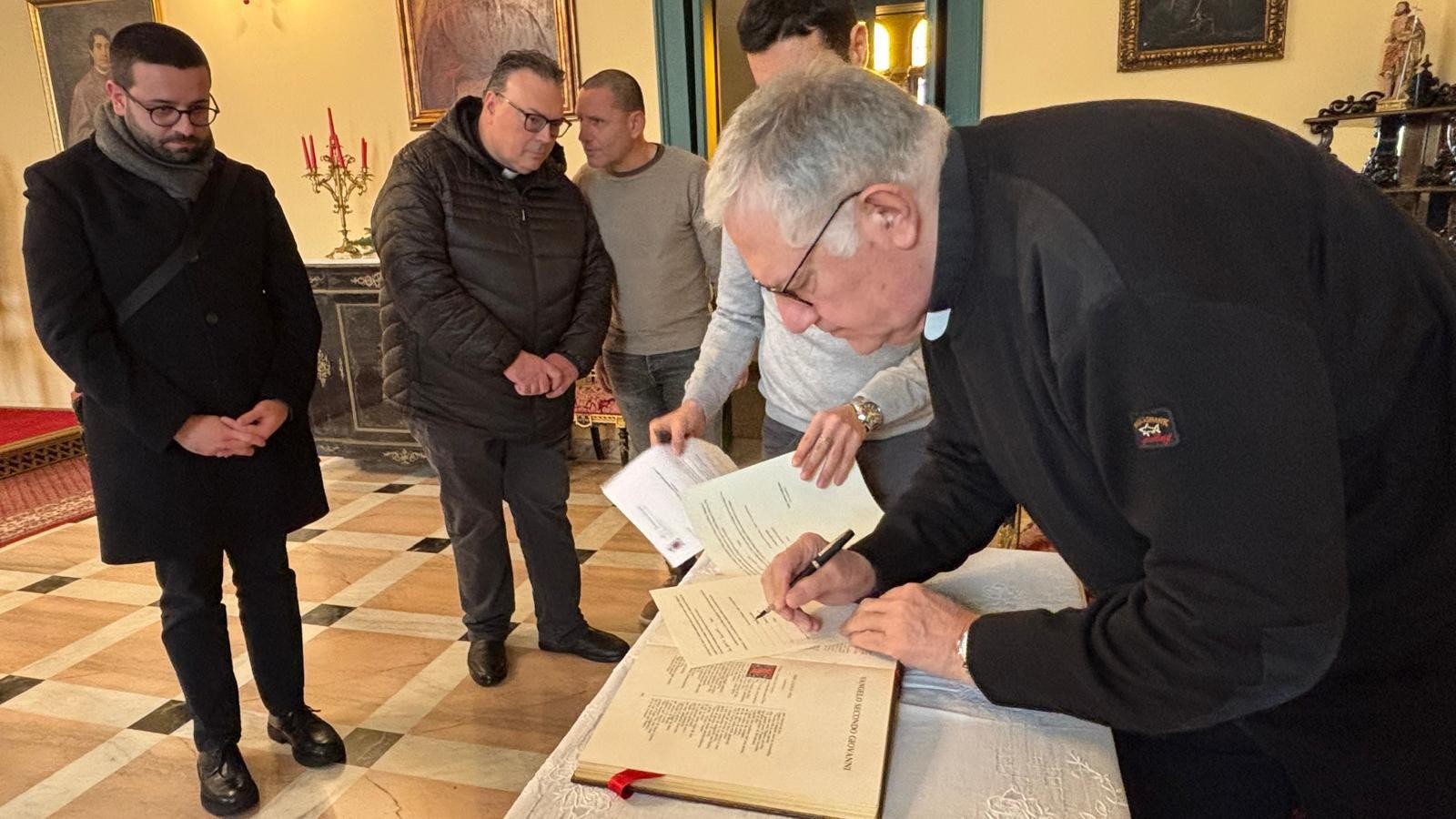 E’ iniziata oggi, 23 gennaio 2026, l’operazione per il trattamento di conservazione della venerata reliquia del Corpo del Fondatore, una iniziativa prevista nell’ambito della celebrazione del centenario della sua nascita al cielo che si celebra il 1 giugno 2027. Nella prima mattinata nella Sede Arcivescovile di Messina, S.E. Mons. Giovanni Accolla ha istituito il Tribunale che presiederà l’operazione: P. Giorgio Nalin è stato nominato Delegato dell’Arcivescovo, il Cancelliere diocesano P. Gianfranco Centorrino, Promotore di giustizia, P. Nino Gugliandolo, Notaio. Tutti e tre, davanti all’Arcivescovo, nell’assumere il loro incarico, hanno prestato giuramento. Si è, inoltre, stabilito che gli Atti relativi all’intervento saranno firmati anche da due testimoni: P. Mario Magro, Rettore della Basilica e P. Agostino Zamperini Postulatore generale. Quindi, raggiunta la cripta del Santuario, dove attendevano alcune consorelle dello Spirito Santo tra le quali la superiora Sr, Barbara, alcuni confratelli di Cristo Re e la comunità della Casa Madre con dei collaboratori laici,  P. Nalin ha introdotto i lavori con un momento di preghiera che, sottolineando il valore e il significato cristiano delle reliquie, ha evidenziato le peculiarità delle santità di Padre Annibale. Sono stati proclamati gli ultimi versetti del capitolo 9 del Vangelo di Matteo (Mt 9,35-38) che costituiscono il carisma del Rogate, il nostro tesoro da comprendere, vivere e diffondere.